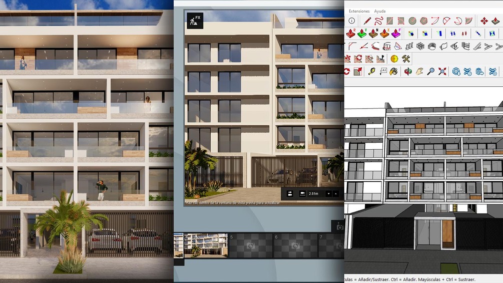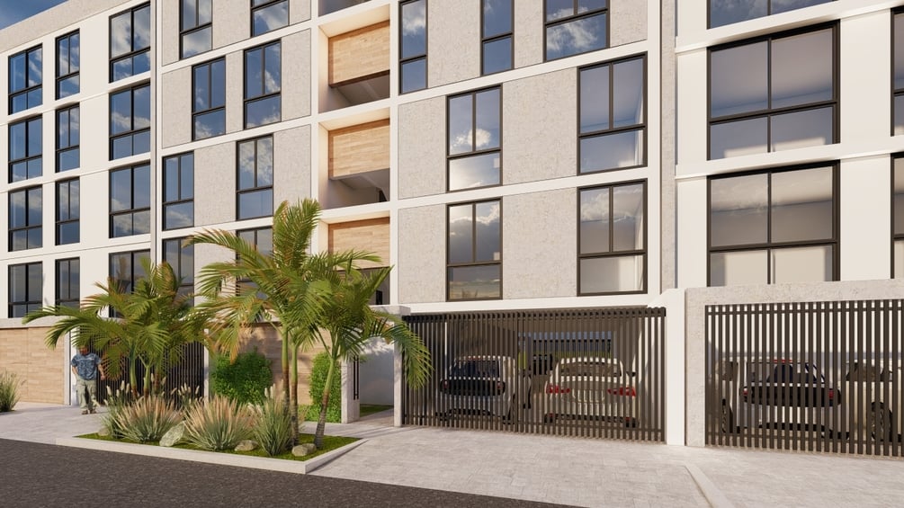 The project is developed on a plot of 320 square meters that has two fronts. In this case, we have developed a project to analyze the economic and commercial viability of a six-story building. Since the municipal regulations limit the height of the building, we chose not to include a basement for parking, as this would have increased construction costs without providing a significant economic benefit.