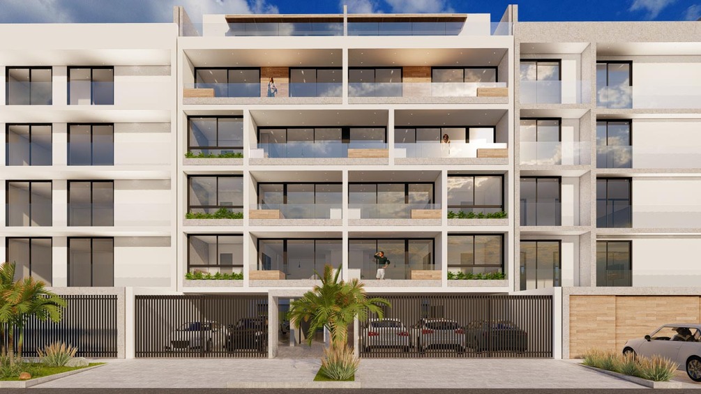 The project consists of 8 apartments, each with 2 parking spaces. As a fundamental requirement, all apartments have a balcony and a swimming pool.